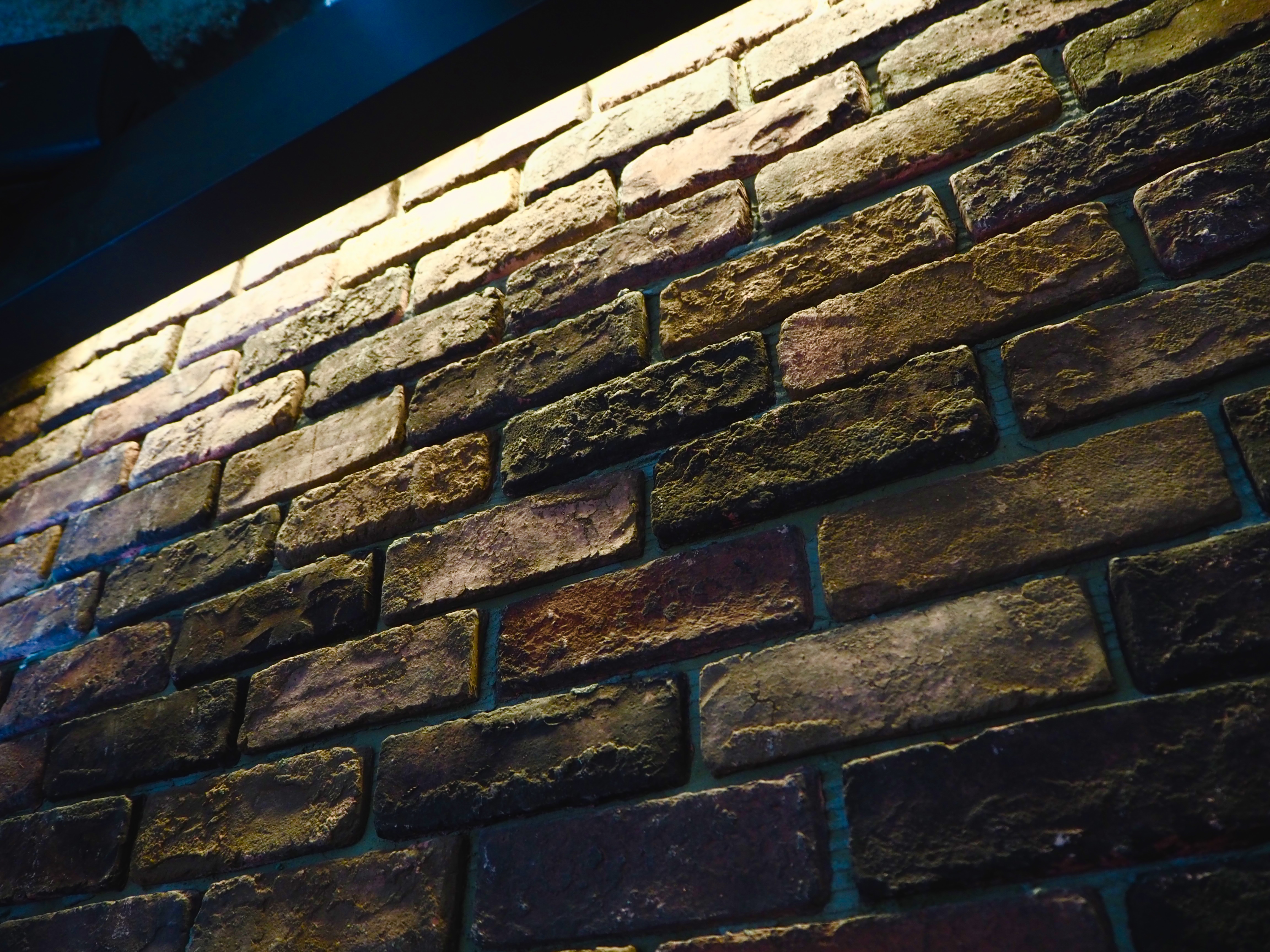 ブリックタイルの壁上には間接照明を仕込みました。