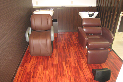 既存店約20坪から移転し、新規店50坪と倍以上の店舗面積での移転拡張の工事をさせて頂きました。理美容の複合店で低価格路線のメニューのお店でしたが、オーナーはサービスに手を抜かない方でしたので、内装デザインにも力を入れさせて頂き、お客様が高級感も感じて頂けるようなデザインを考えました。