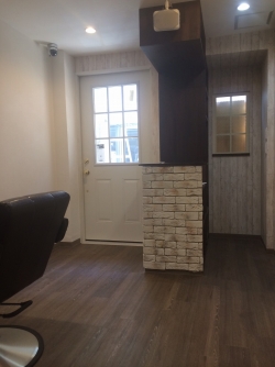 元飲食店からの改装でしたので、環境を整えるために予算が割かれてしまいましたが、こだわりのアンティークタイル、ジョリパット仕上などを施し、ドア・ドアノブまで海外から取り寄せ、デザインをまとめさせて頂きました。