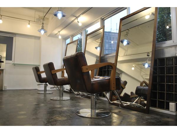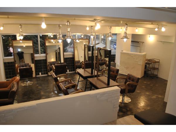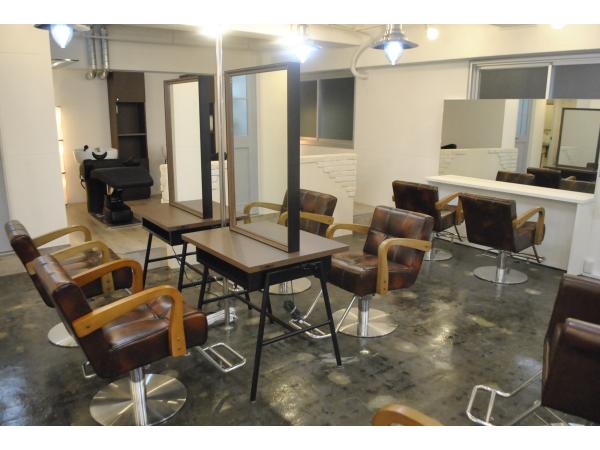 弊社新商品の両面自立ミラーでセット面を多く設けるように配置し、多くのお客様を収容出来る様にプランニング致しました。こだわりはブリックタイルとジョリパット仕上げです。