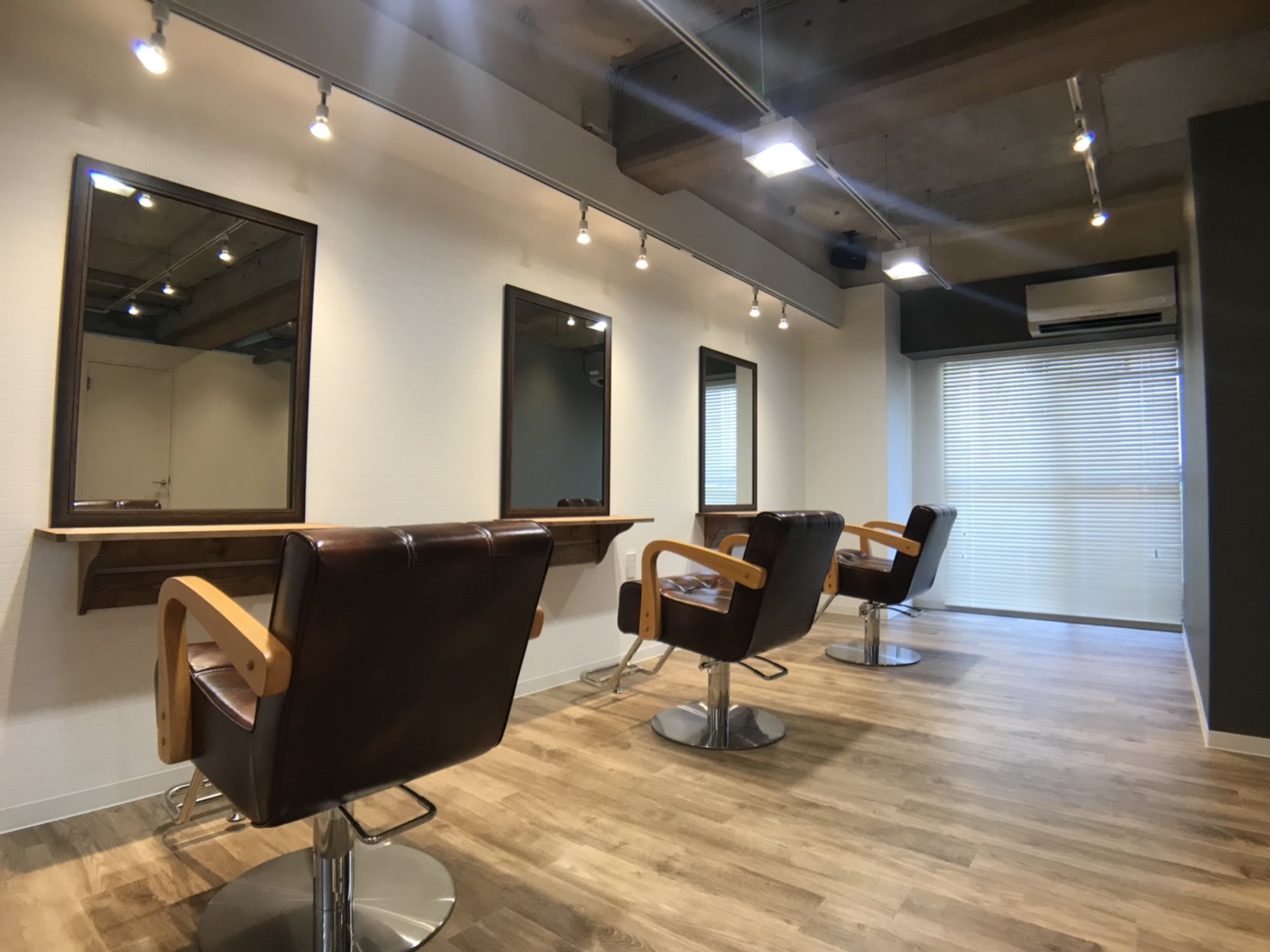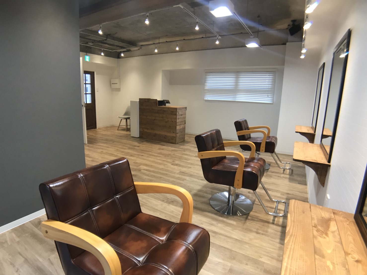 柏駅から5分程歩いた先の古着屋さんが並ぶ路地に完成した『awlhair』様。木テイストとアクセントの効いた店内に仕上げました。